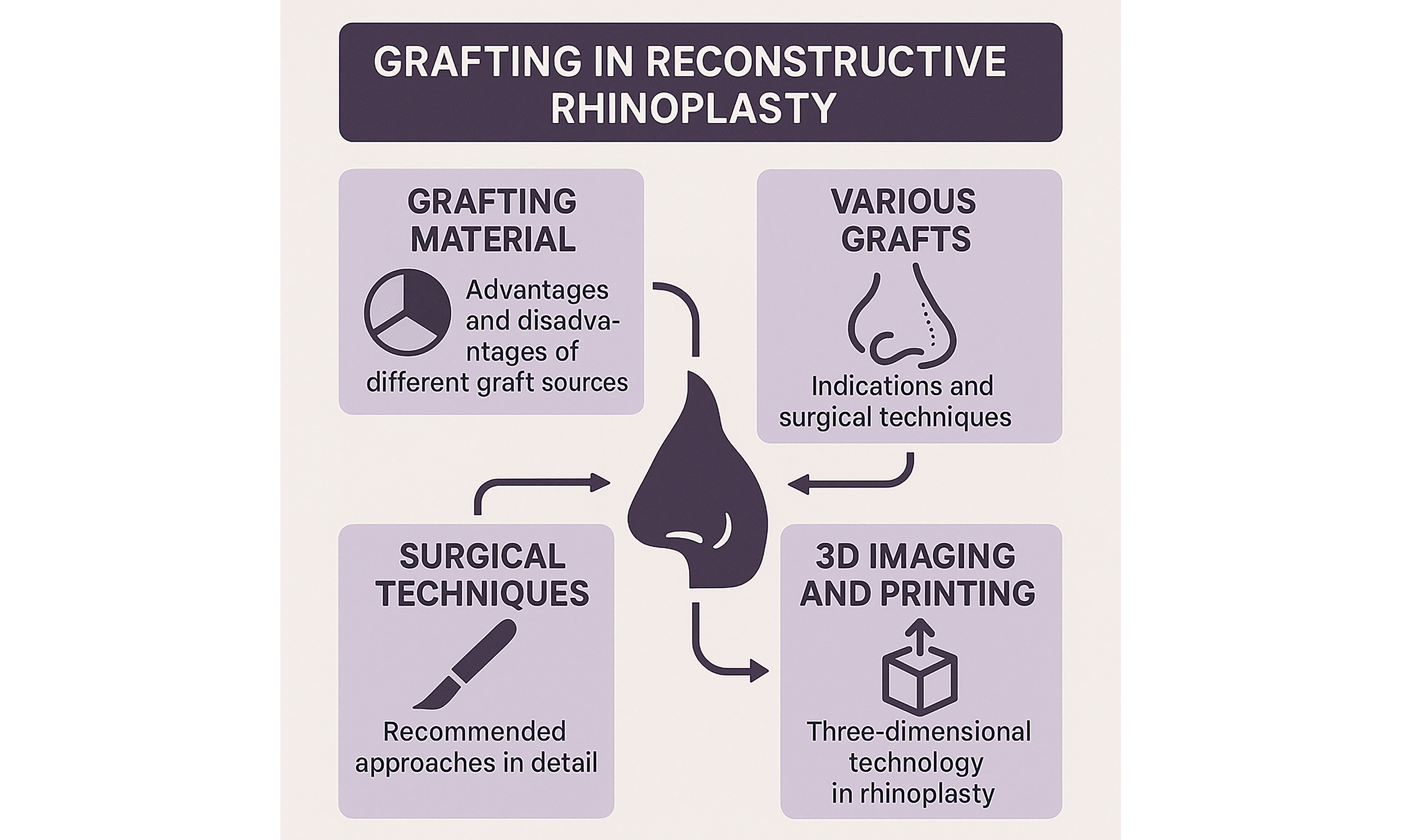 This chapter initially reviews the current literature regarding sources of grafting materials, including alloplastic implants, autologous cartilage, and homografts. The remainder of the article discusses specific grafts in reconstructive rhinoplasty based on nasal anatomic region, recommended surgical techniques, and graft indications. It provides a strategic guide for surgeons as they navigate some of these more popular grafting techniques. The article also aims to discuss current controversies and research related to different grafts. Recent advances in three-dimensional (3D) imaging and printing technology and their roles in successful grafting outcomes in rhinoplasty are also discussed.