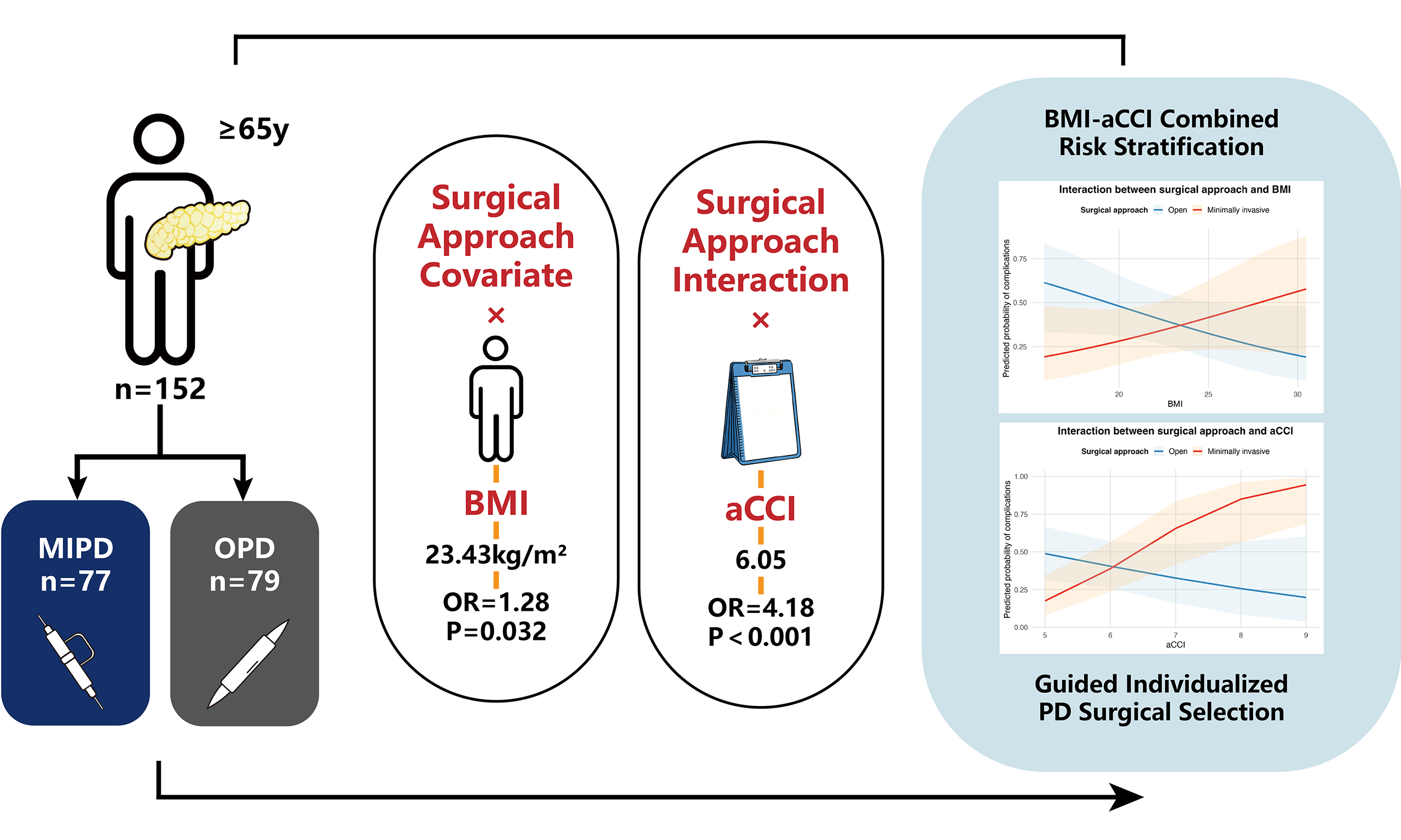Conclusion: A combined BMI–aCCI–based risk stratification framework supports individualized surgical approach selection in elderly patients undergoing PD.