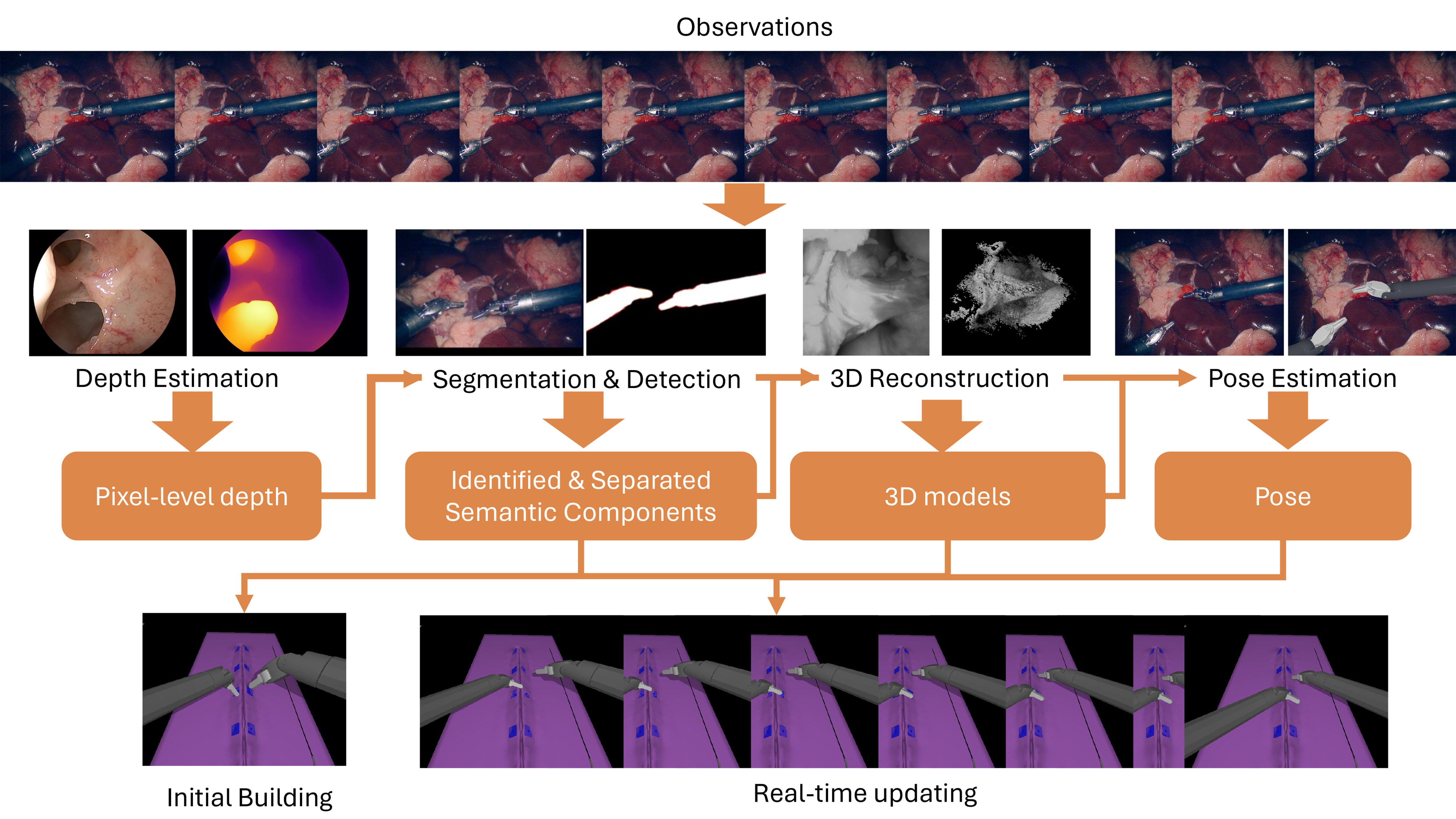 Figure 4. An overview of geometric scene understanding tasks and corresponding impact in the building and updating of DT. All figures in the article are generated solely from the authors’ own resources, without any external references. DT: Digital twin.