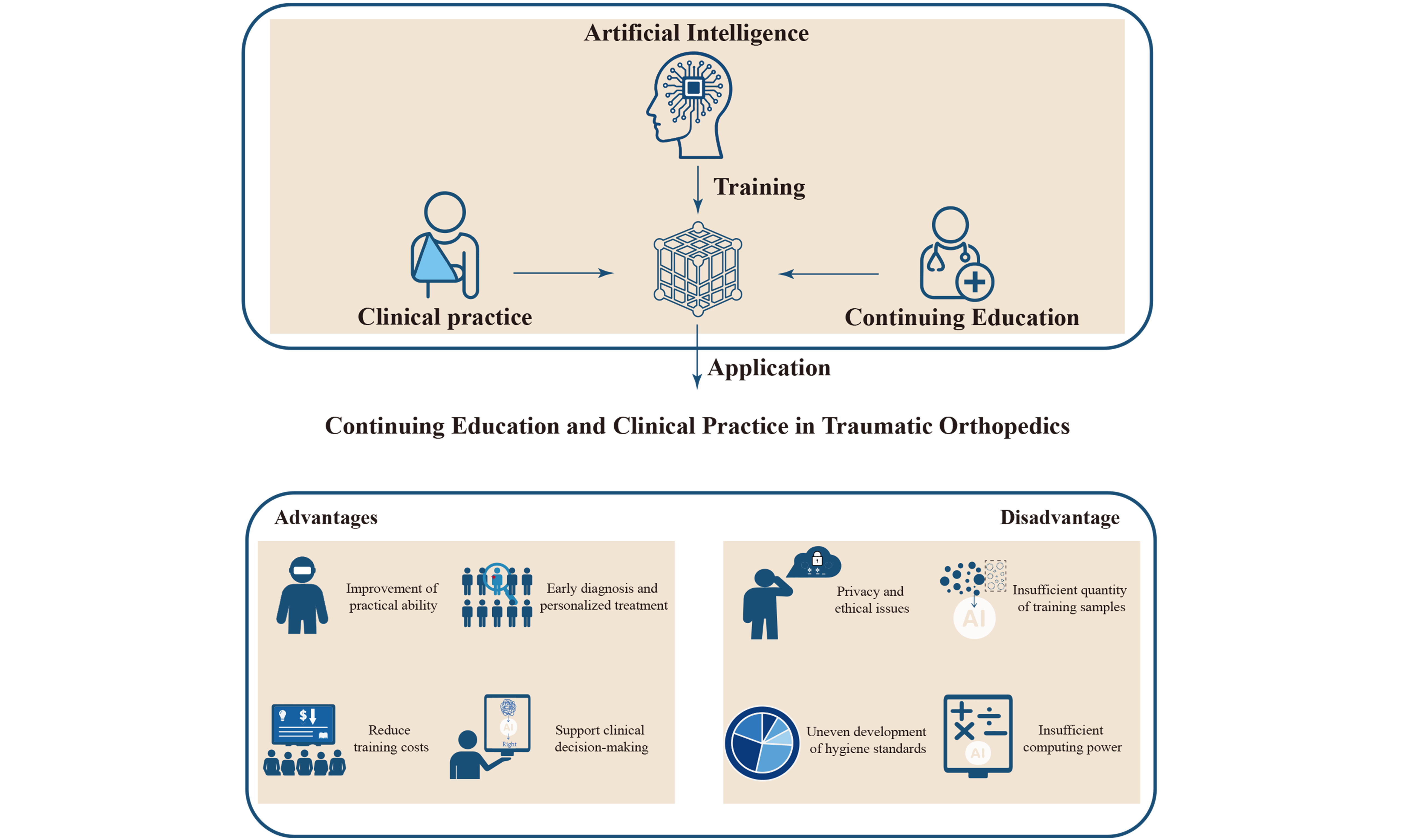 In recent years, the rapid development of AI in the medical field has brought about unprecedented transformation and opportunities in continuing medical education, particularly in trauma orthopedics. As a cutting-edge technology, AI has demonstrated significant potential not only in supporting clinical diagnosis, optimizing treatment plans, and predicting prognoses, but also in advancing medical education. With the ever-expanding and rapidly evolving body of medical knowledge, traditional teaching methods often fall short in meeting the growing demands for efficient learning and accurate skill acquisition among healthcare professionals. The integration of AI technologies offers promising solutions to address these challenges.
