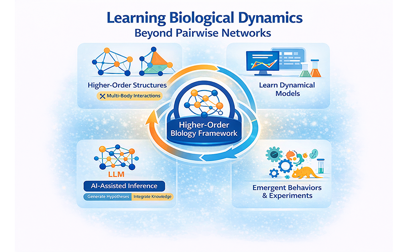 Integrating higher-order structure with learnable dynamics opens new avenues for mechanistic discovery. Mechanisms emerge as identifiable dynamical patterns linked to specific multi-body interactions, enabling the detection of context-dependent interaction regimes, regime shifts, and drivers of emergent behavior. Large language models (LLMs) can further assist this process by generating structured hypotheses, synthesizing prior biological knowledge, and constraining the search space for data-driven inference[34,35]. Combined with empirical data and higher-order learning, such hybrid workflows offer a scalable path toward systematic, interpretable, and mechanism-driven modeling of complex biological systems[36].