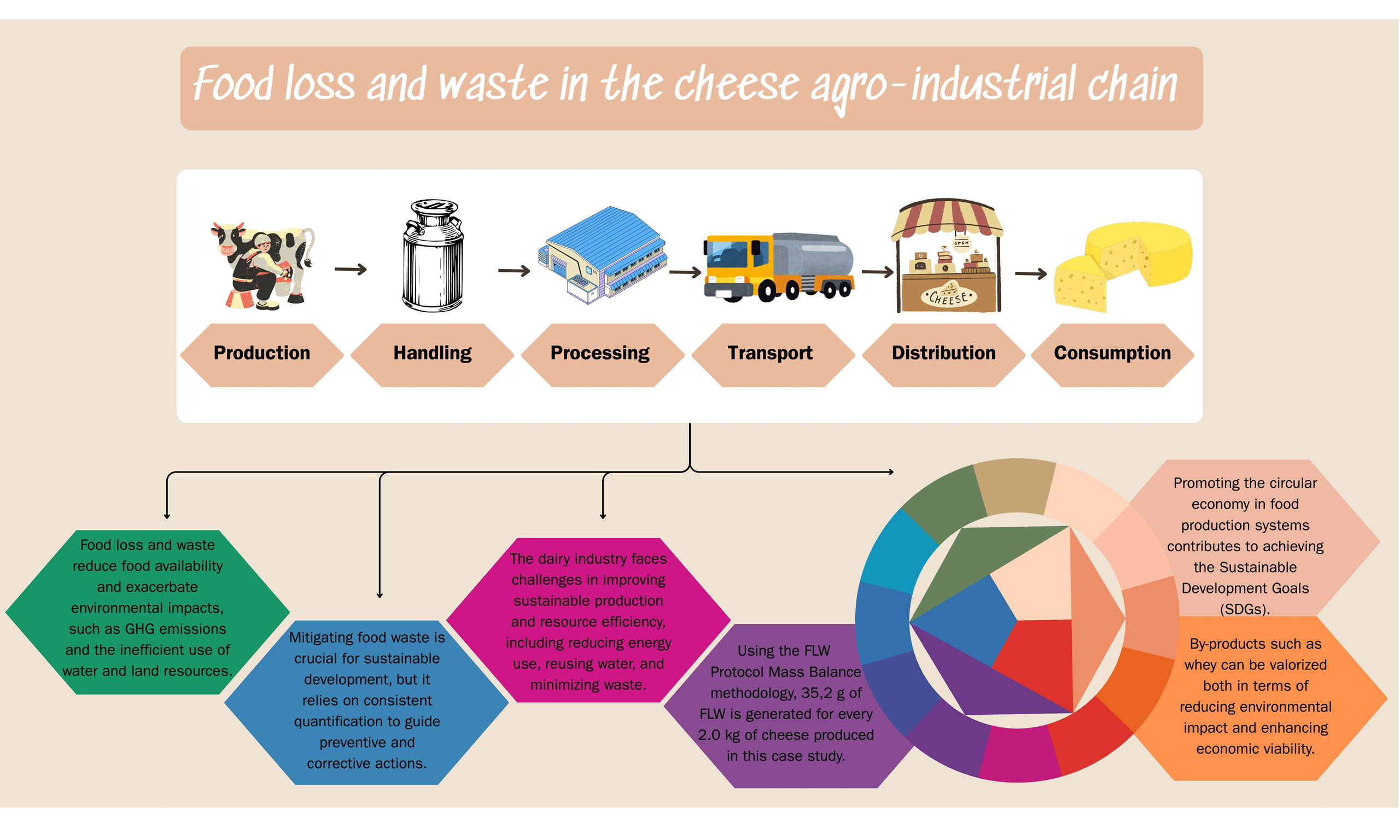 In the FAO report Global Food Losses and Food Waste, the main FLW points along the Cheese Agro-Industrial Chain (CAC) are identified. In the production stage, losses stem from reduced milk production due to dairy cow diseases (e.g., mastitis); in post-harvest handling and storage, losses occur due to milk spillage and spoilage during transport from the farm to distribution centers; in processing, losses include spills during milk treatment and processing into dairy products (e.g., cheese and yogurt); in distribution, waste includes market system losses; and in consumption, waste occurs at the household level[11].