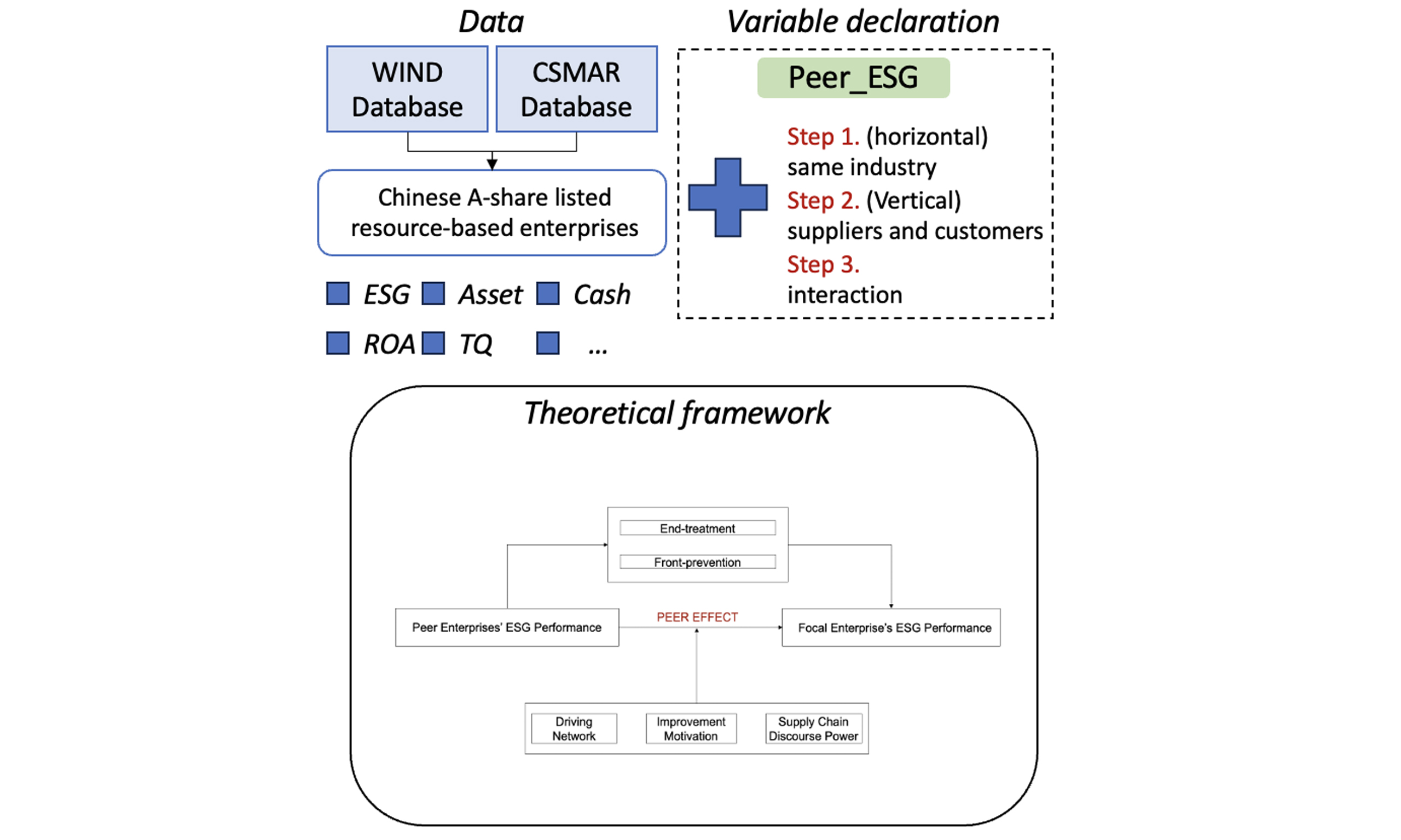 H2: Under the synergistic influence of vertical and horizontal networks, peer effects on ESG performance can enhance focal enterprises’ ESG performance by elevating their “end-treatment” and “front-prevention” capabilities.
