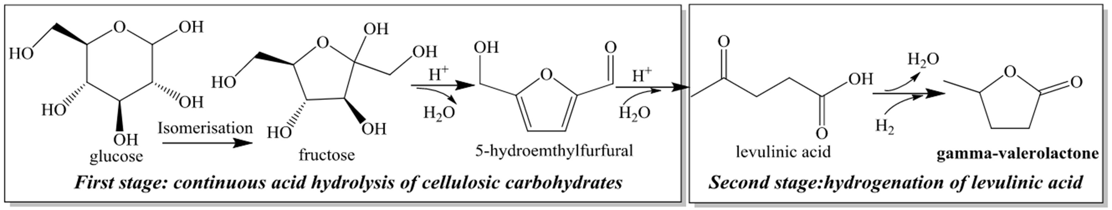 Xylose, a five-carbon sugar derived from hemicellulose, is highly soluble and has a low heat of combustion, making it an attractive bio-based feedstock for GVL synthesis. After dehydration to FUR, it undergoes further reactions to produce GVL[10] [Figure 8].