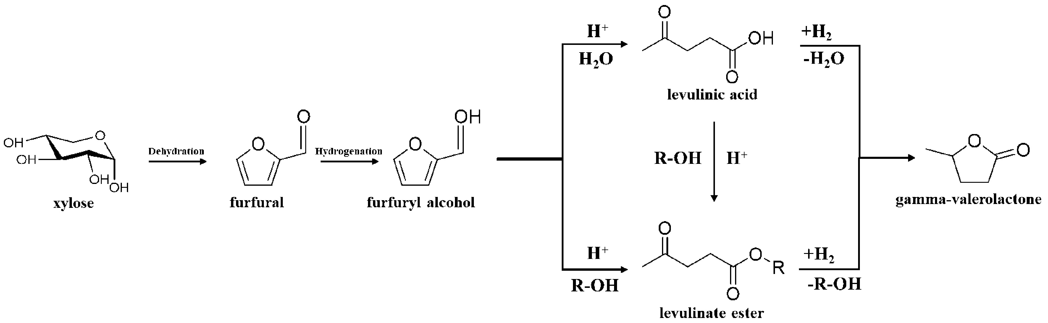 A summary of recent research progress in the synthesis of GVL using xylose as the starting material