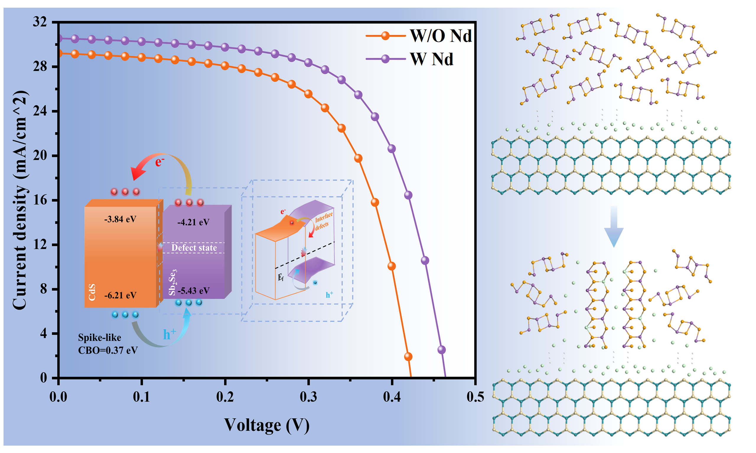 Antimony selenide, lanthanide element neodymium, ionic antisite diffusion, heterojunction interface, density functional theory