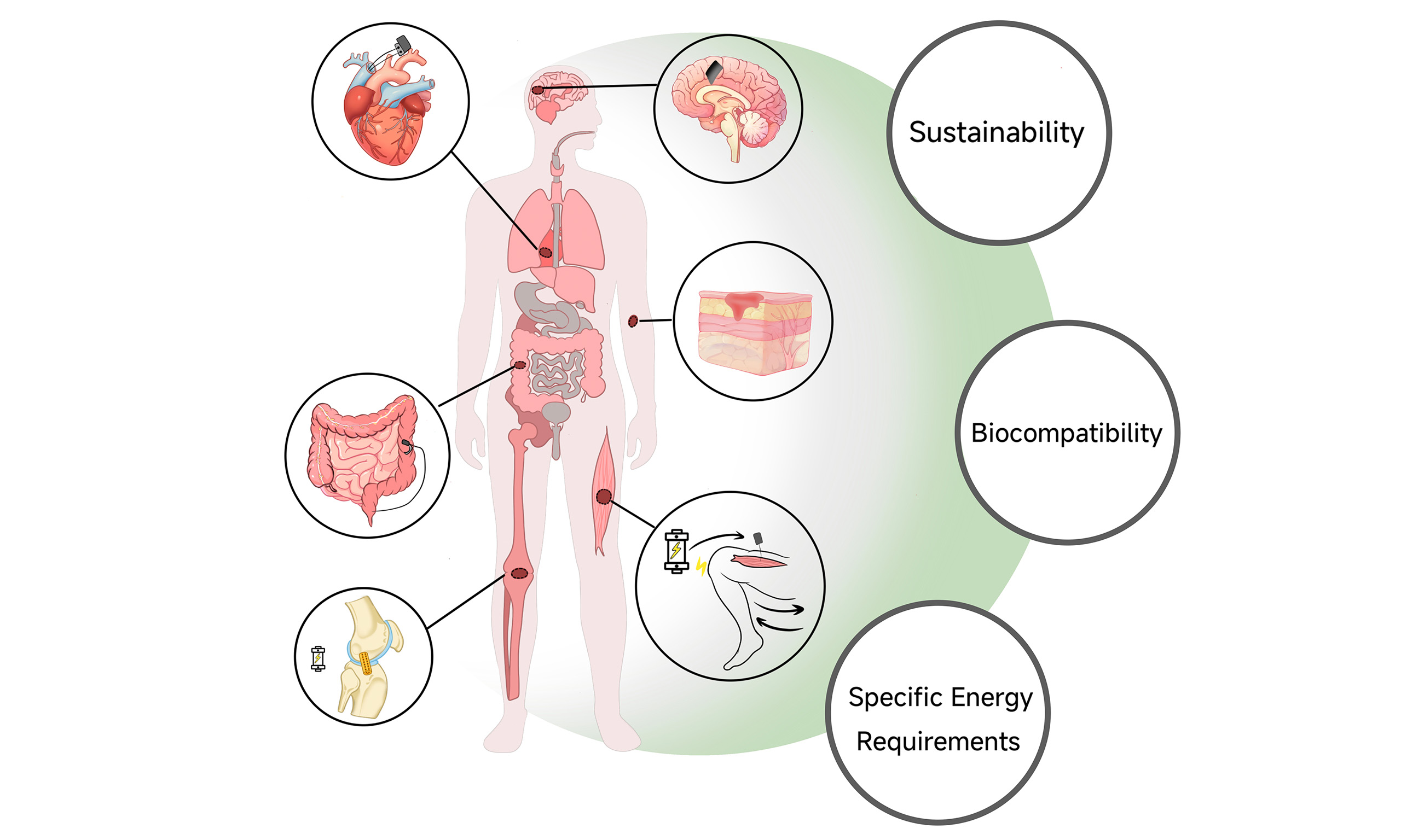 Unlike external energy storage devices, implantable energy systems must adapt to the body's constrained space, tissue-specific physiological and mechanical environments, and daily movement dynamics. These principles and requirements, driven by clinical needs and energy conservation, influence both material selection and design approaches for next-generation implantable energy systems.
