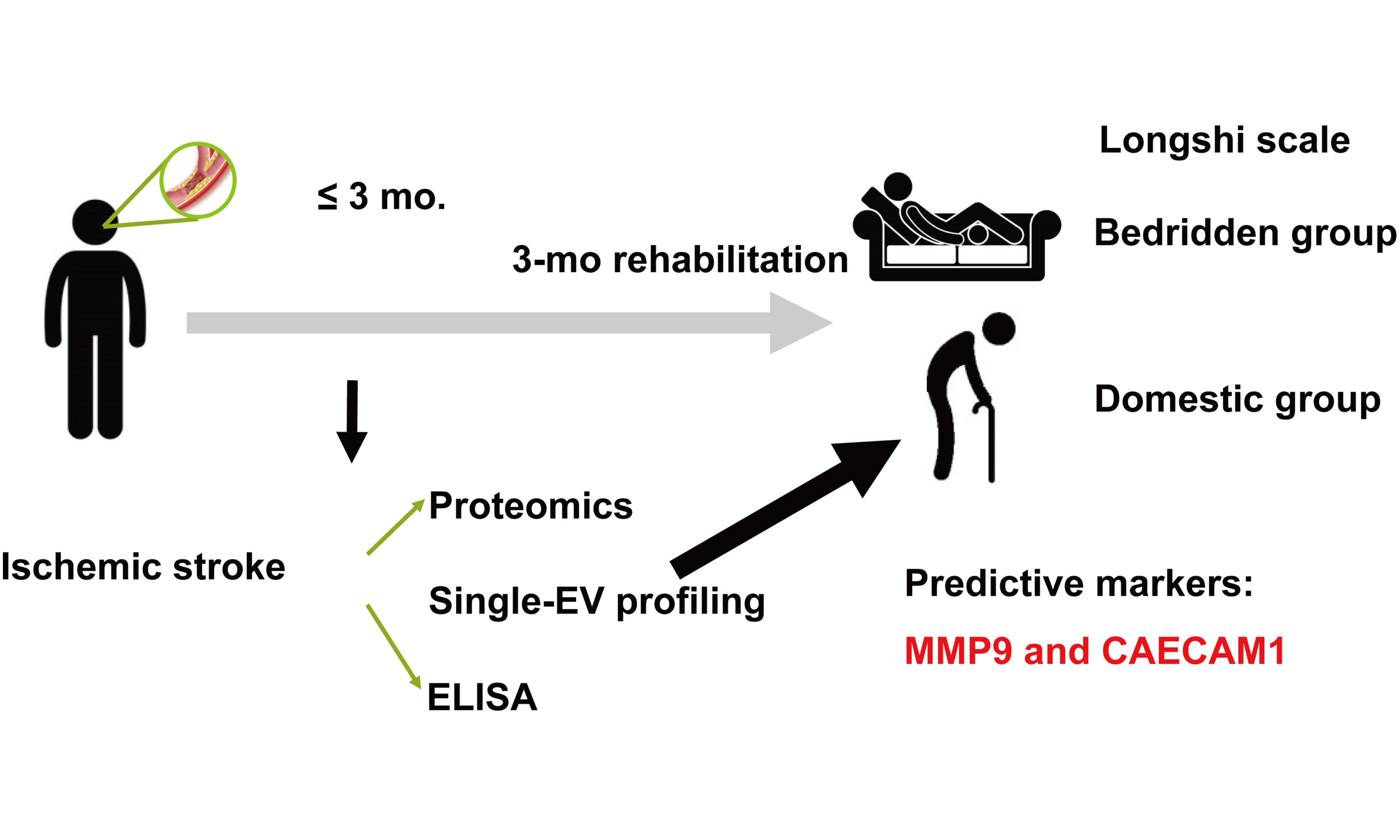In conclusion, this study establishes MMP9 and CEACAM1 as EV-associated biomarkers for predicting rehabilitation outcomes in patients with IS. By integrating single-EV proteomic profiling with functional recovery evaluation, our findings lay the groundwork for more targeted, personalized rehabilitation strategies. However, they contribute to a better understanding of the molecular mechanisms underlying stroke recovery.