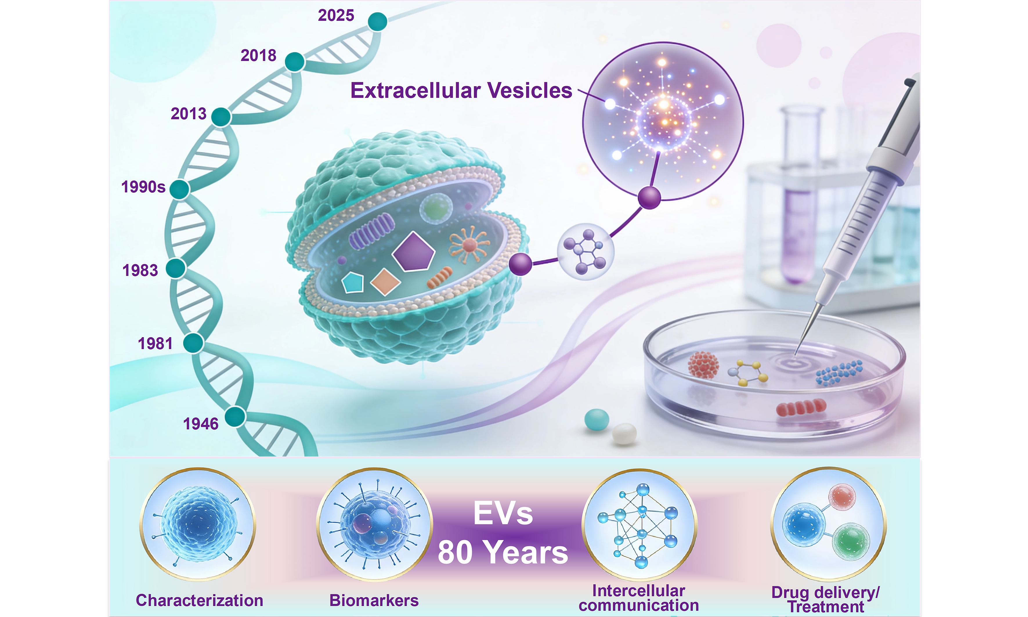 Extracellular vesicles (EVs) are heterogeneous, lipid bilayer-enclosed vesicles secreted by cells. Research on EVs dates back to the 1940s, and the term “exosomes” - a major subtype of EVs - was coined in 1981 to describe small membrane vesicles shed from cells. However, it is only in the past two decades that research in this area has expanded rapidly. By transferring functional biomolecules, EVs play a pivotal role in intercellular communication and regulate a wide range of cellular functions under both physiological and pathological conditions. Owing to their high biocompatibility, capacity to protect encapsulated cargo from degradation, and ability to cross biological barriers, EVs also show great promise as biomarkers and drug-delivery systems. Following the first, albeit unintentional, isolation of EVs in 1946, the 80th anniversary of EV research is now approaching. In this review, we trace the history of EV research and summarize key advances in the field. We also discuss current challenges and future prospects in this rapidly evolving area.