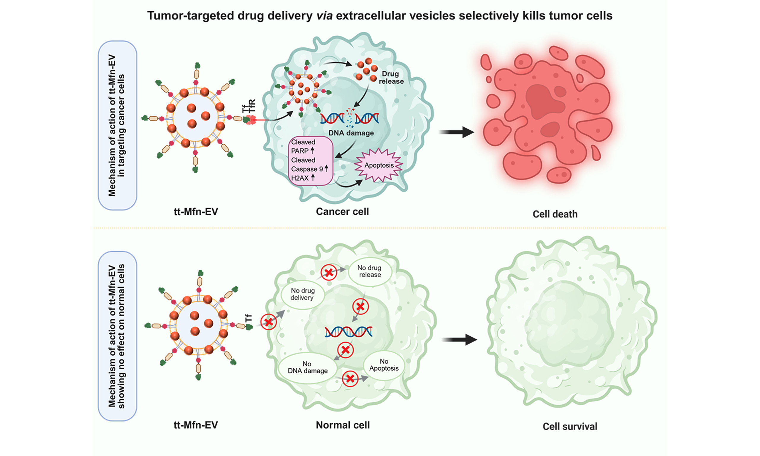 Conclusion: Our study showed that tt-Mfn-EVs exerted selective and enhanced tumor-targeted cell killing in vitro, providing an opportunity for developing EV-based drug carriers for cancer therapy.