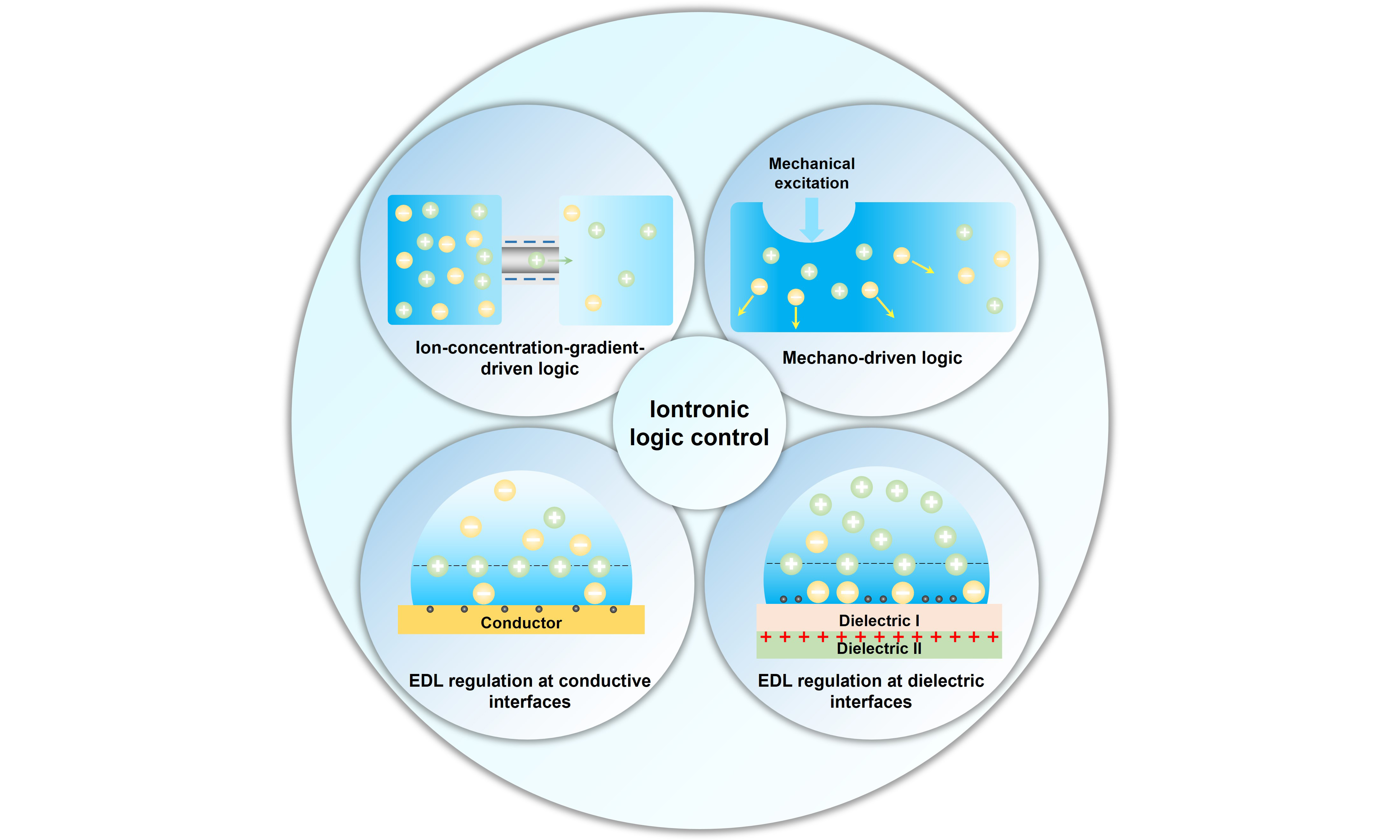 In summary, iontronic logic control has emerged as a transformative paradigm for information processing, surpassing some of the inherent limitations of conventional semiconductor electronics. By employing ions as dynamic charge carriers and leveraging mechanisms such as ion-concentration gradients, mechanical stimuli, electric or triboelectric field regulation on EDLs, researchers have shown that logic operations can be implemented entirely through ionic phenomena, frequently operating without the need for sustained external power[24,25]. These developments underscore the unique capability of iontronic systems to integrate energy harvesting with signal processing, operate seamlessly in soft and aqueous environments, and interface directly with biological systems. As highlighted in this Perspective, the field is now poised to advance from proof-of-concept demonstrations to fully integrated platforms supporting neuromorphic computing, adaptive sensing, and bio-interfaced electronics. Achieving this transition will require improvements in switching speed, long-term stability, and scalable integration, alongside deeper insights into nonequilibrium ionic-electronic coupling at complex interfaces. Addressing these challenges will enable iontronic logic control to evolve from a compelling laboratory concept into a mature, versatile technology for next-generation computing, soft robotics, biomedical devices, and other energy-efficient data-intensive applications.