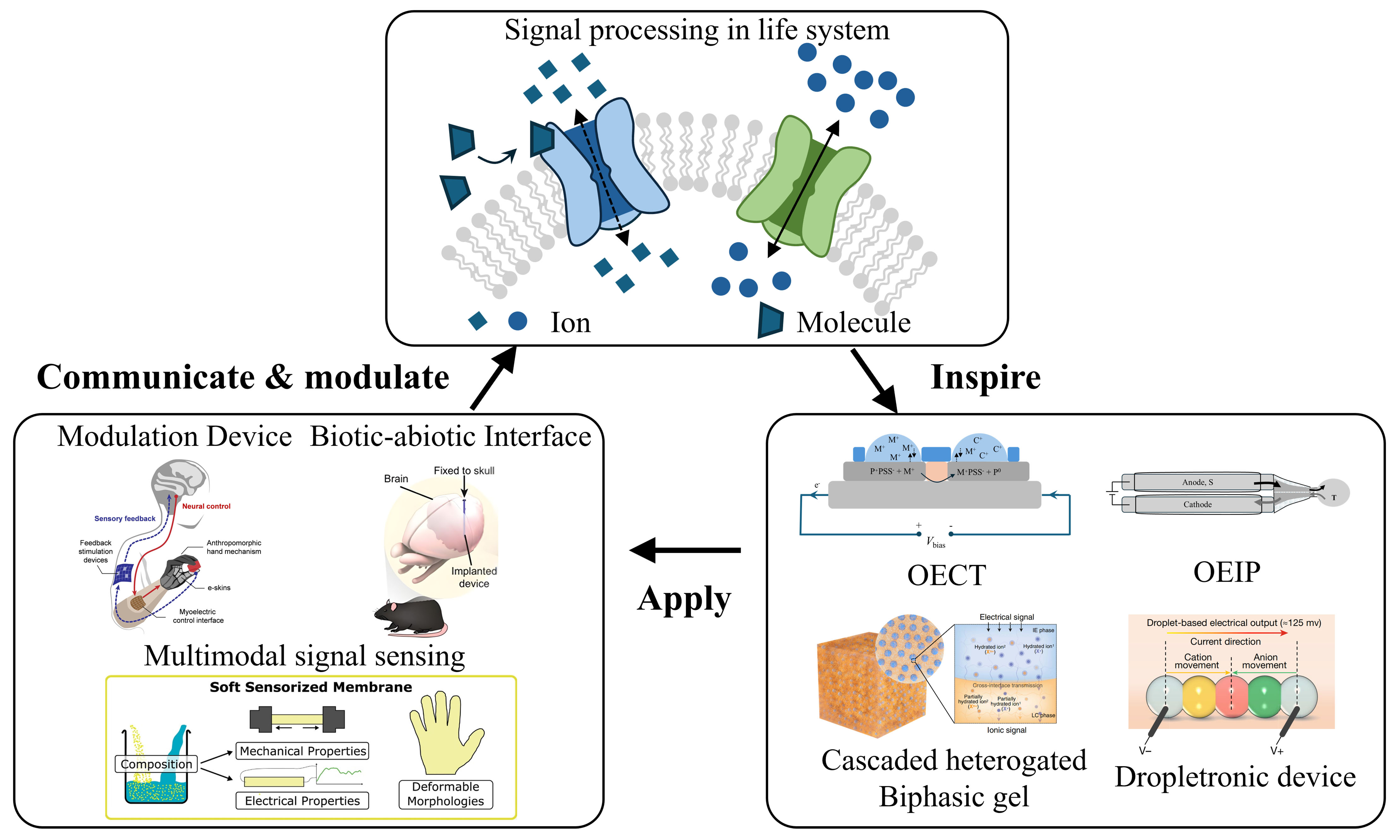 17. Chen, W.; Zhai, L.; Zhang, S.; et al. Cascade-heterogated biphasic gel iontronics for electronic-to-multi-ionic signal transmission. Science 2023, 382, 559-65.