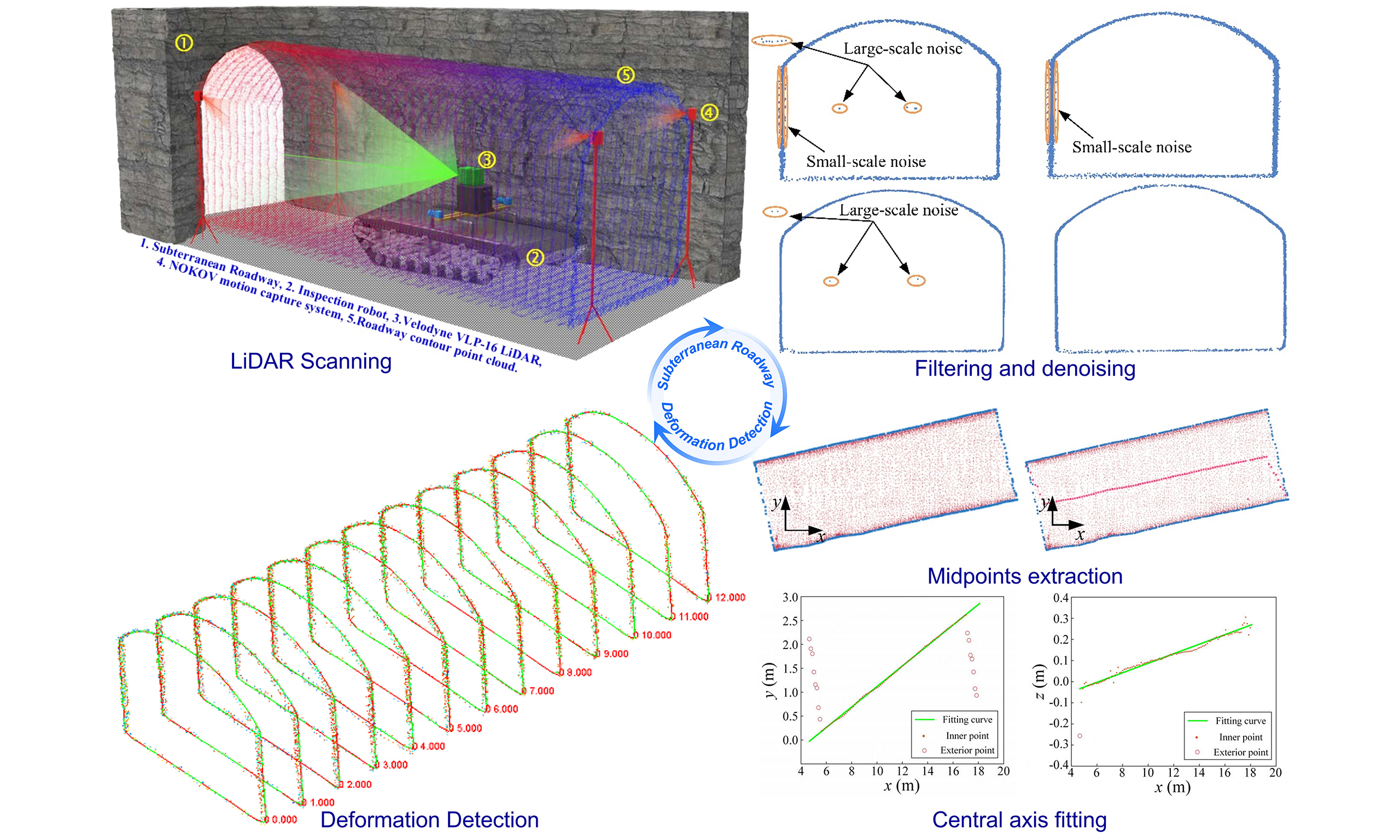 Subterranean roadway deformation detection based on LiDAR scanning and fusion filtering