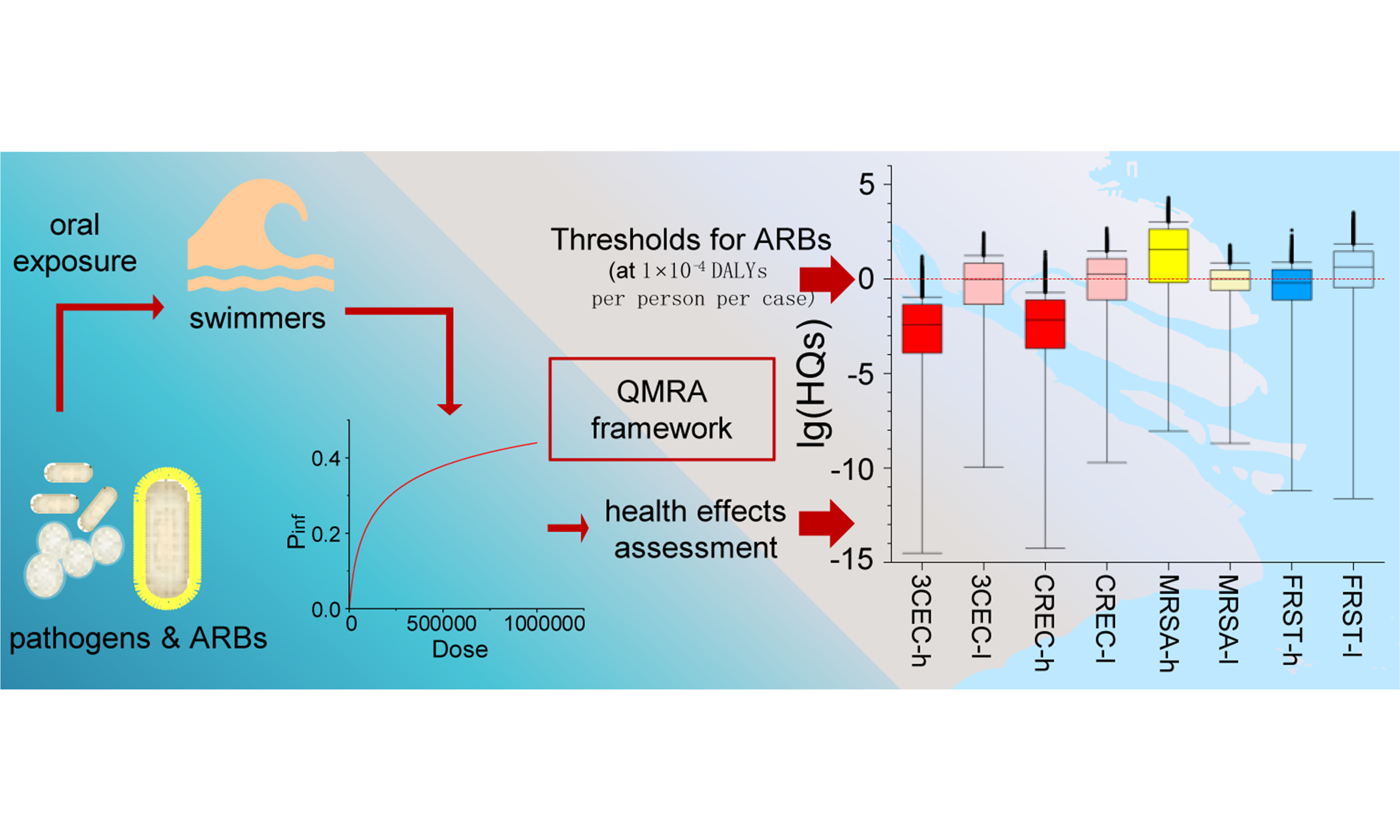 To bridge the gap between environmental surveillance of ARBs and public health safeguarding, this study aimed to: (1) develop environmental thresholds for ARBs using a QMRA framework; and (2) apply these thresholds and a sequencing-based quantification approach to assess health risks in the Yangtze Estuary. The target pathogens and ARBs were selected from the clinically relevant ARBs identified in the estuary through monitoring. By integrating QMRA with site-specific monitoring data, this work provides a novel framework for establishing science-based ARB thresholds and offers practical management strategies for mitigating AMR risks in aquatic environments.