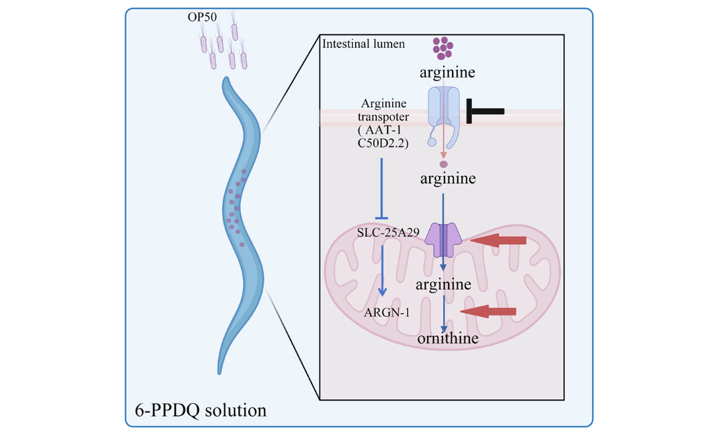 Arginine absorption, arginine catabolism, 6-PPDQ, nematodes