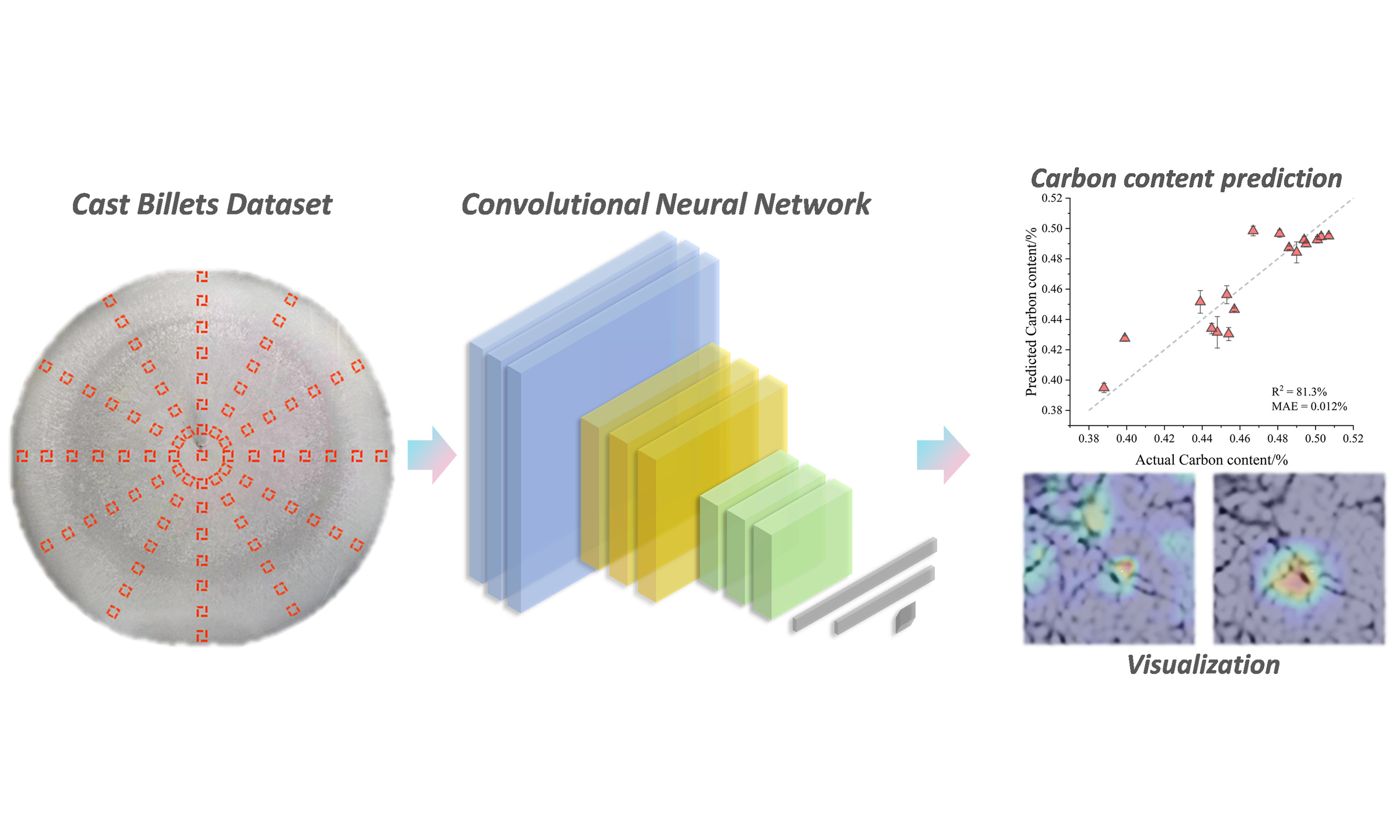 To address this gap, the present work focused on the application of CNNs for predicting carbon segregation defects in continuously cast steel billets. Specifically, we propose a CNN-based prediction model that takes low-magnification images of billet cross sections as input and predicts the carbon content at specific locations within the billet. The present study is deliberately restricted to 600 mm round 42CrMo billets produced on a single industrial casting line and should be regarded as a proof-of-concept demonstration rather than a fully generalized solution. By training the model on a dataset comprising labeled images and corresponding carbon content measurements, we aim to explore whether spatially resolved segregation patterns can be inferred from routine metallographic images. In addition, we discuss how such an image-driven framework could ultimately complement conventional segregation assessment and process optimization once it is extended and validated across broader alloy systems and process conditions.