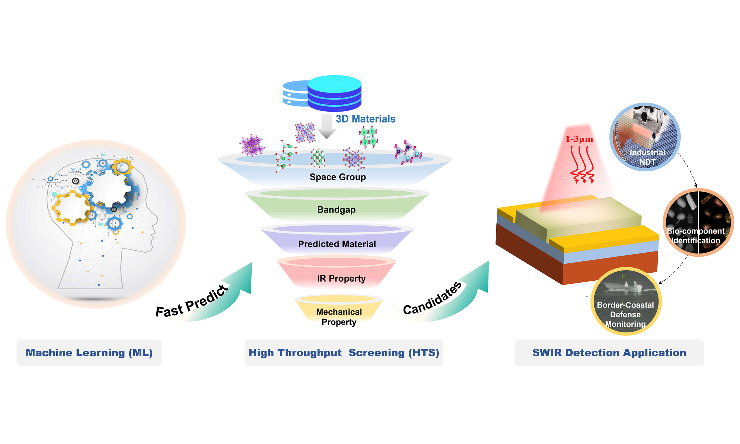 As shown Figure 2A, we introduced a series of screening criteria to identify promising SWIR detection materials. The overall screening workflow is presented as following: