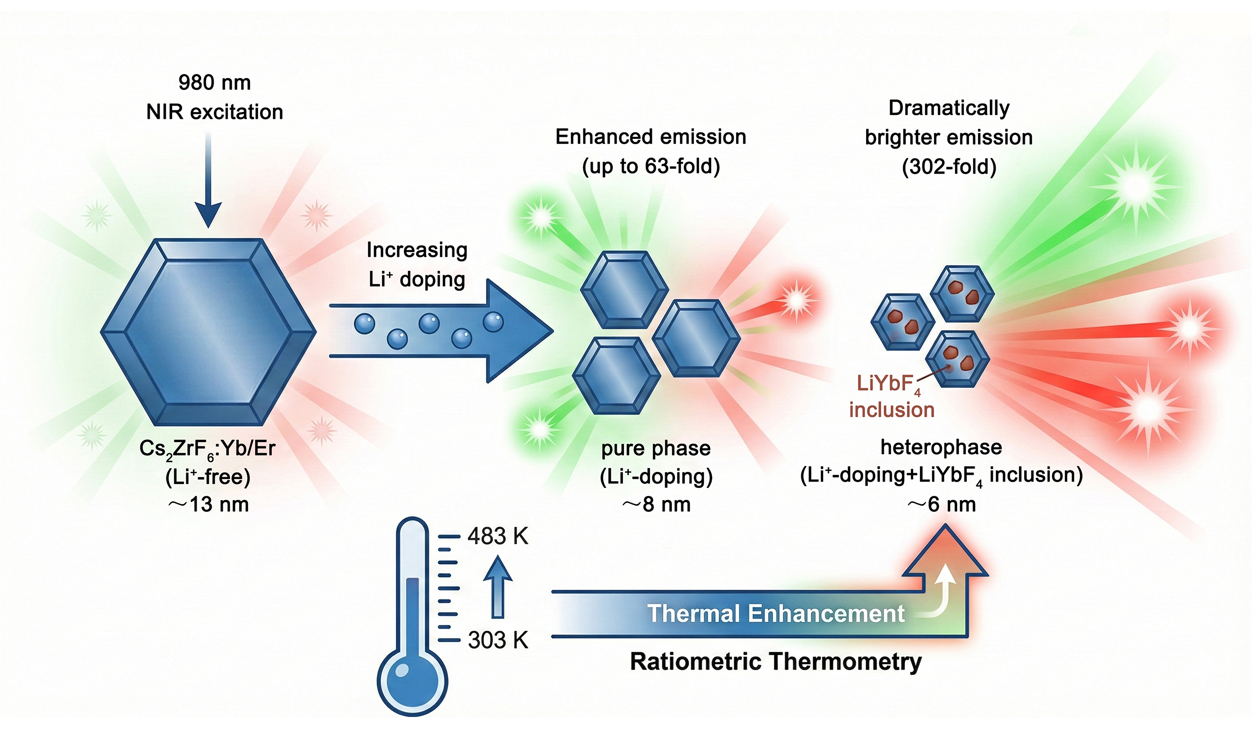 17. Hu, C.; Li, X.; Xie, W.; et al. Thermal enhancement of upconversion in sub-10 nm Yb3+/Er3+/Na+ tridoped Cs2ZrF6 nanocrystals for ratiometric temperature sensing. Adv. Optical. Mater. 2024, 12, 2400073.