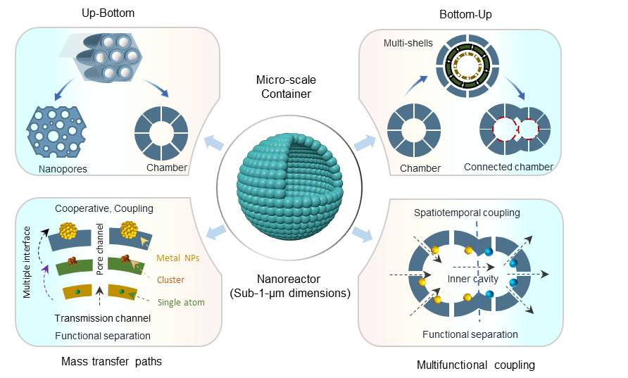 Under the framework of cascade reactions, mesoporous nanoreactors exhibit remarkable capabilities in enhancing catalytic performance by leveraging their pore and cavity structures to modulate reaction pathways. These nanoreactors rely on spatial organization and confinement effects to optimize the interaction between reactants, intermediates, and catalytic sites, thus achieving higher selectivity, improved efficiency, and reduced formation of undesired by-products.