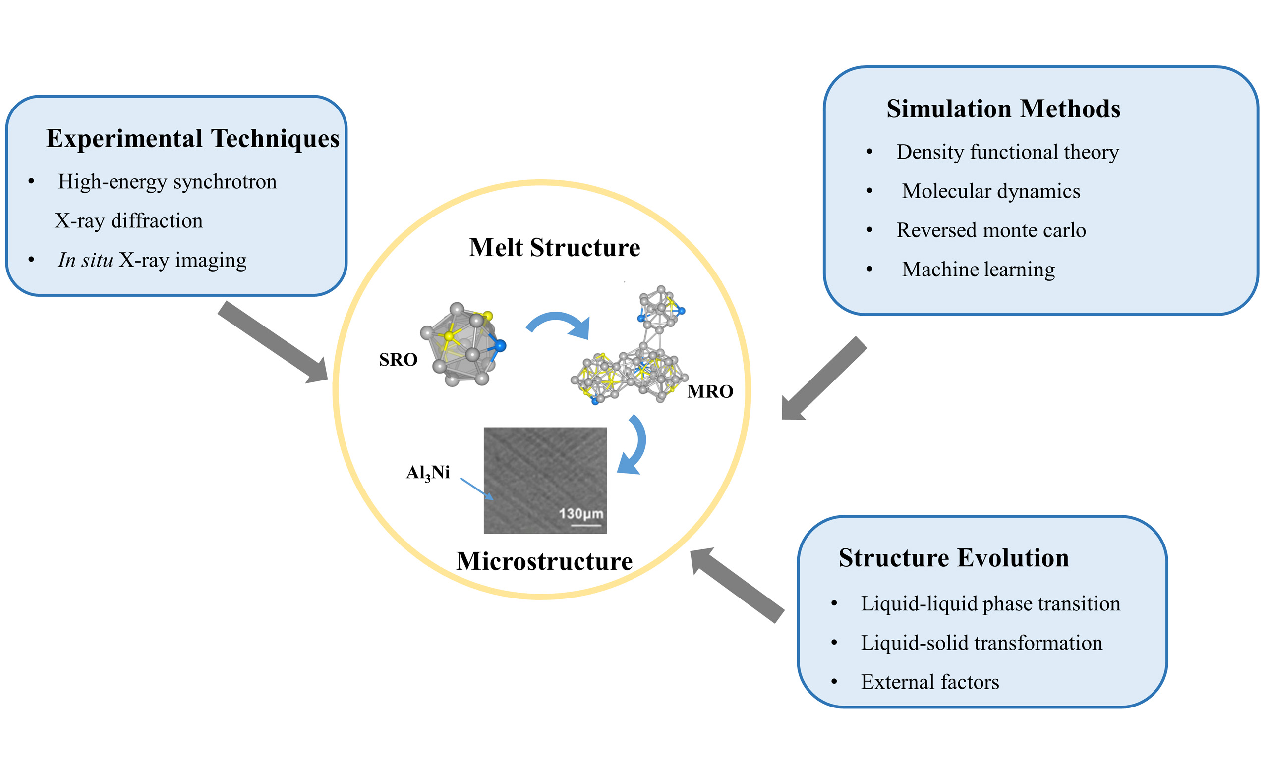 Metallic melts play a crucial role in a wide range of material applications, including metal casting and alloy synthesis[1,2]. The structure and properties of metallic melts directly influence the quality and performance of the final products. For example, in metal casting, the viscosity and diffusion behavior of the melt affect the filling of molds and the formation of defects[3]. In alloy synthesis, the local structure of the melt determines the distribution of alloying elements and the resulting microstructure[4]. By understanding and controlling the structure of metallic melts, we can optimize the mechanical properties, electrical conductivity, and thermal stability of materials, which are essential for high-performance applications.