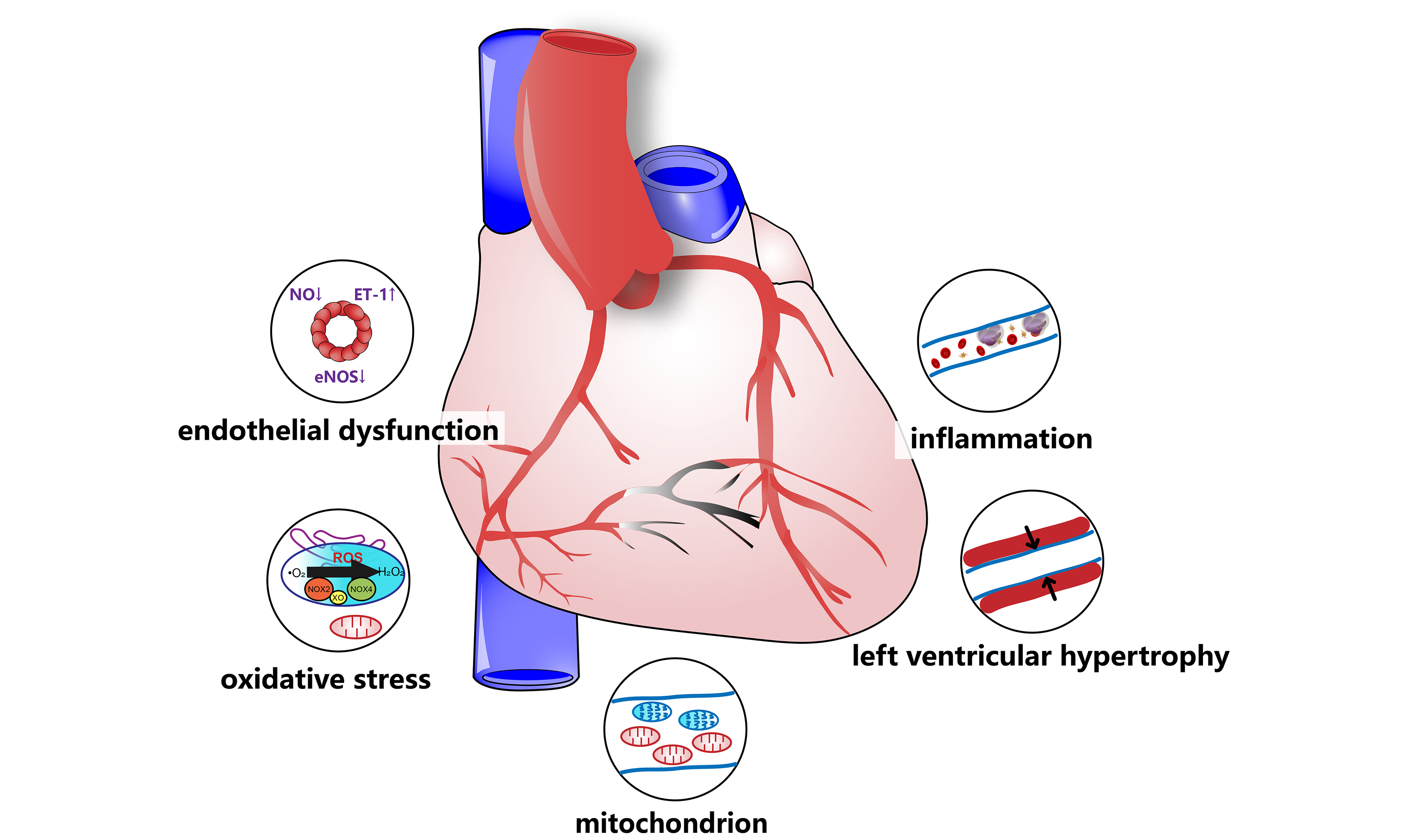 Several studies have shown that ovariectomy itself can deteriorate cardiac function or induce cardiac hypertrophy. To some extent, it explains the special pathological mechanism in ventricular hypertrophy and CMD in women. In aged rats, ovariectomy further aggravates the aging-induced decline in cardiac function, exacerbates left ventricular and endocardial collagen deposition, and amplifies these effects compared to aged non-ovariectomized counterparts. Ovariectomy also elicits a significant increase in cardiac inflammatory responses and oxidative stress[105]. In female rats, isolated ovariectomy did not result in reduced cardiac function, substantial cardiac collagen accumulation, or notable expansion of myocardial cell surface area. By contrast, ovariectomy combined with coronary artery occlusion-induced MI led to marked elevations in both collagen deposition and myocyte hypertrophy. Cardiac angiotensin receptor AT1 levels were significantly elevated in both ovariectomy-exposed and MI patients[106]. AT1 receptor activation elicits cardiac hypertrophy and promotes collagen deposition. Not only AT1 receptor expression but also aortic angiotensin-converting enzyme (ACE) were increased by ovariectomy, along with reduced eNOS activity and NO production[107].