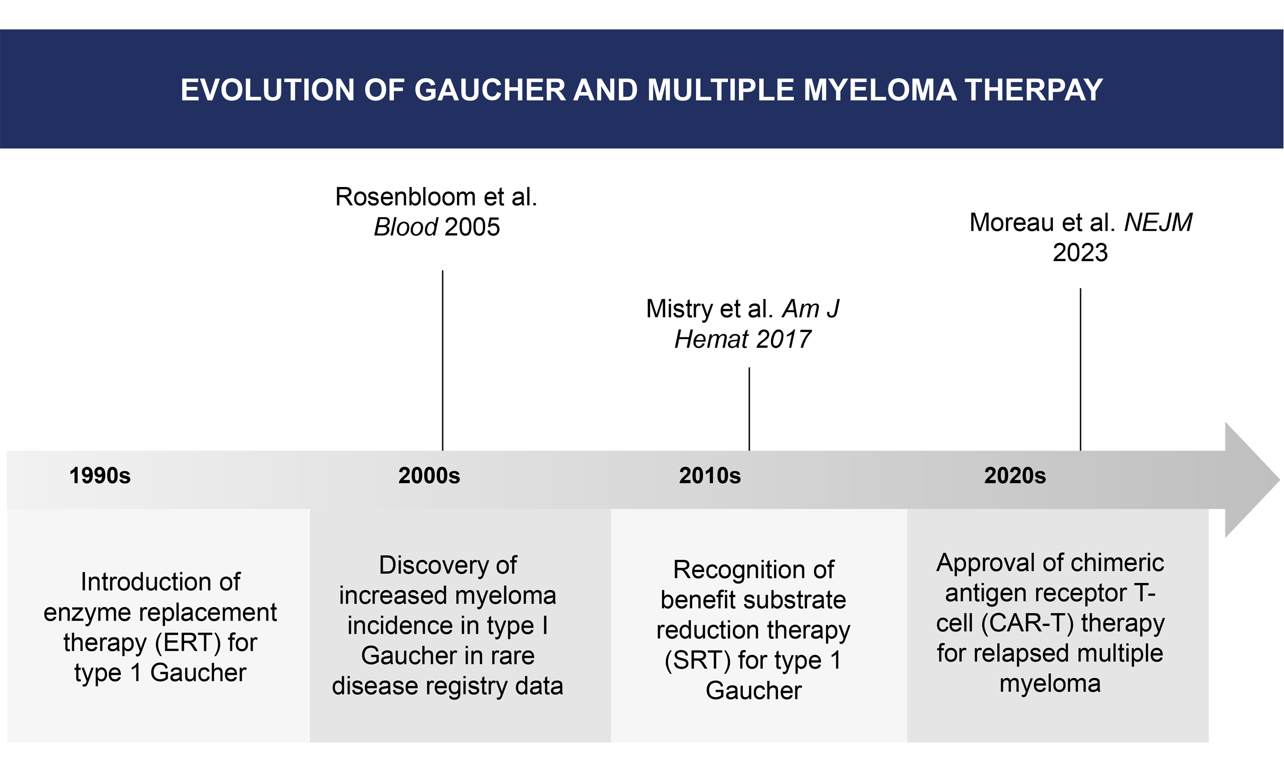 The spectrum of monoclonal gammopathies, ranging from MGUS to MM, presents several challenges: optimizing risk stratification, deciding when to intervene and with which regimen in SMM, and sequencing the multitude of novel therapies to maintain quality of life and long-term survival in MM. The proliferation of novel targeted therapies in MM has expanded the boundaries of success in patients refractory to existing therapies, but these therapies carry unique logistical and toxicity challenges. With improvements in GD1 therapy to prevent classic Gaucher manifestations such as splenomegaly and bone disease, more focus will turn to other disorders that patients are at risk for in middle and older age.