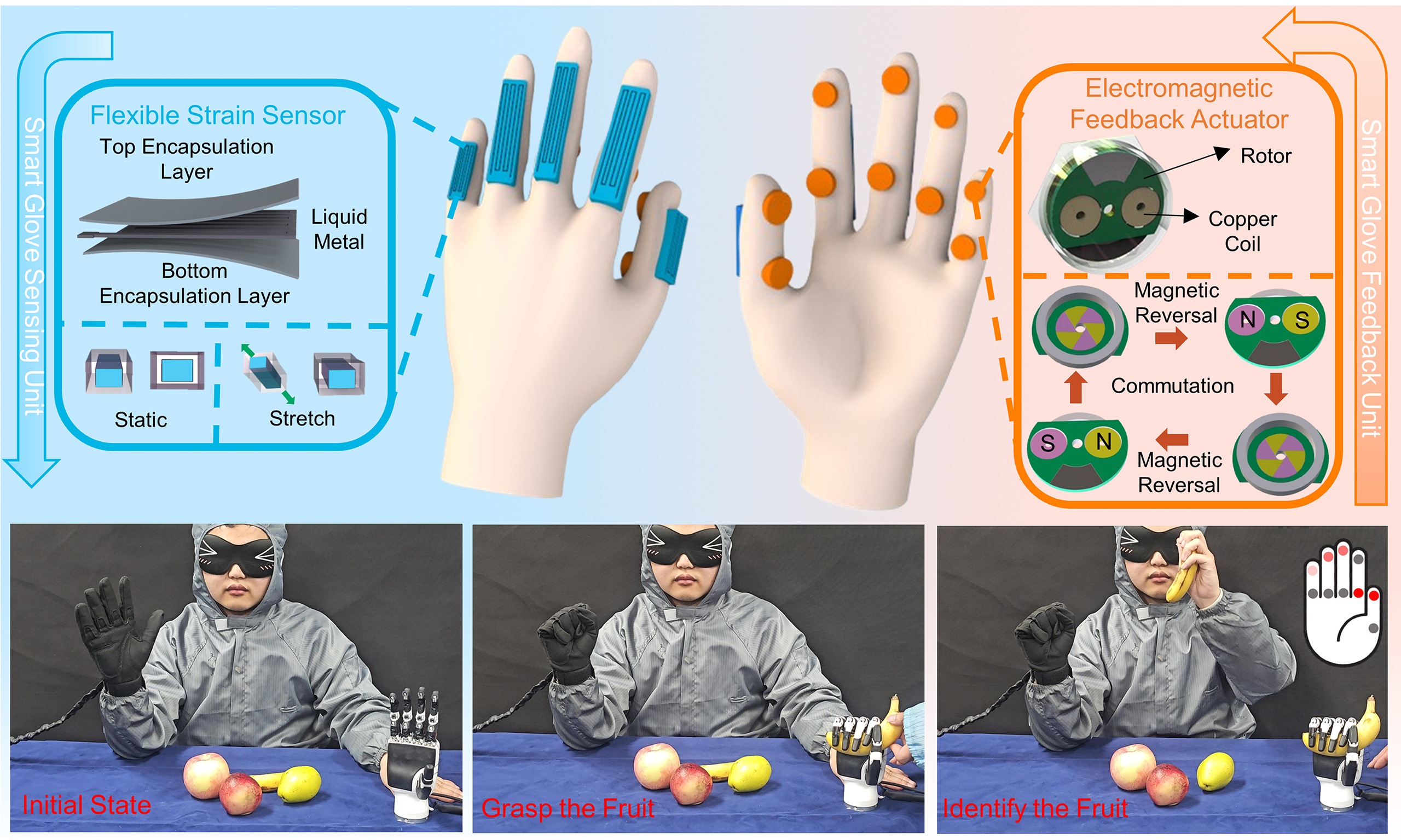 Human-machine interfaces, wearable smart gloves, gesture recognition, tactile feedback, electromagnetic actuators, closed-loop interaction