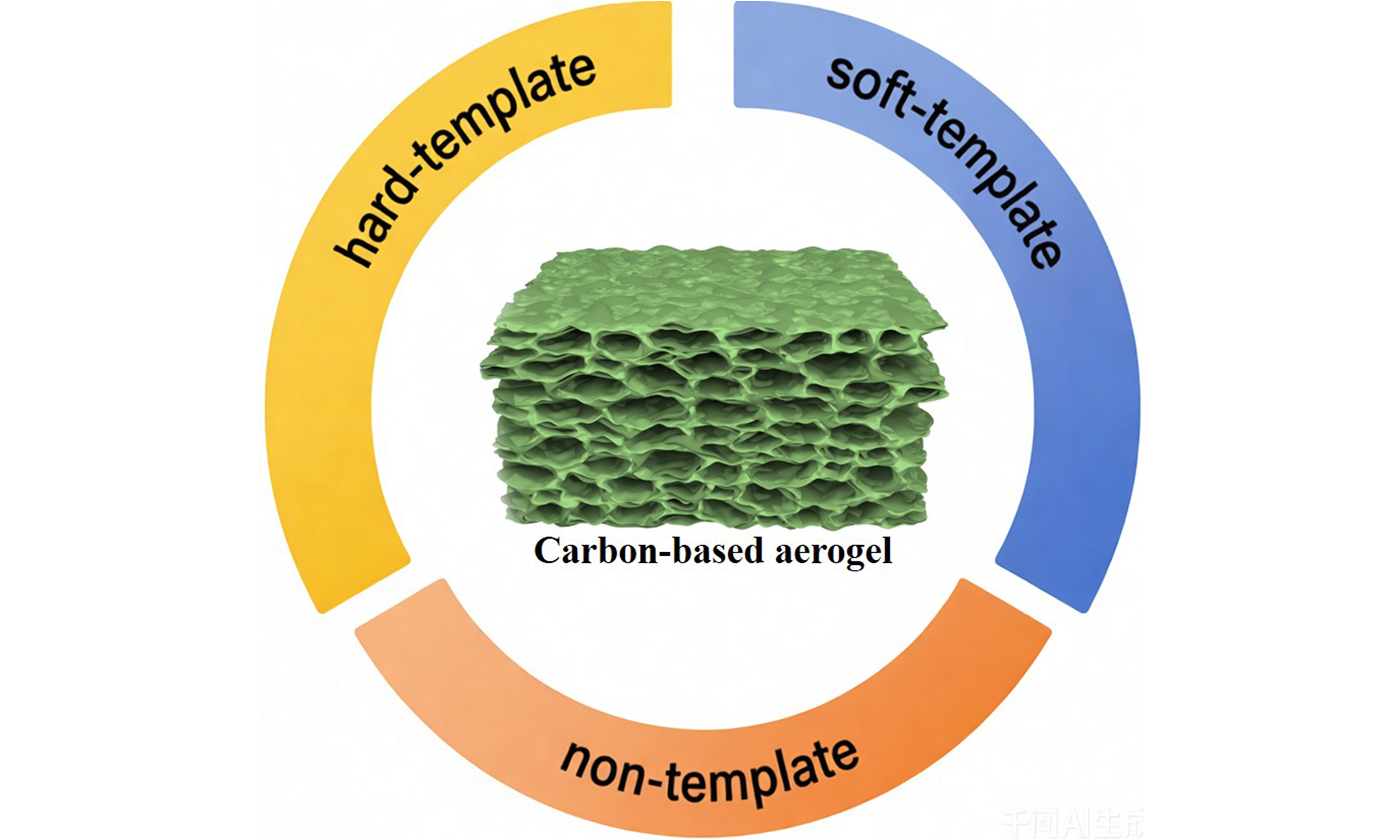In addition to obtaining 3D porous structures through freeze-drying technology using ice templates, templates such as silicon dioxide (SiO2) microspheres, polystyrene (PS) microspheres, polymethyl methacrylate (PMMA) microspheres and salt crystals can also be introduced into the system to construct porous carbon-based aerogels.