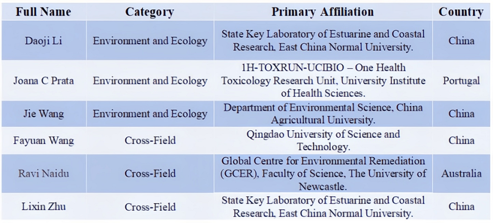 Emerging Contaminants and Environmental Health (ECEH), a newly launched international, open access journal in 2025, is delighted to announce that six of its editorial team members—including Editors-in-Chief, Associate Editors, and Editorial Board members—have been named Highly Cited Researchers this year. This remarkable achievement highlights not only the scientific leadership of these scholars but also the strong academic foundation upon which this new journal is built.