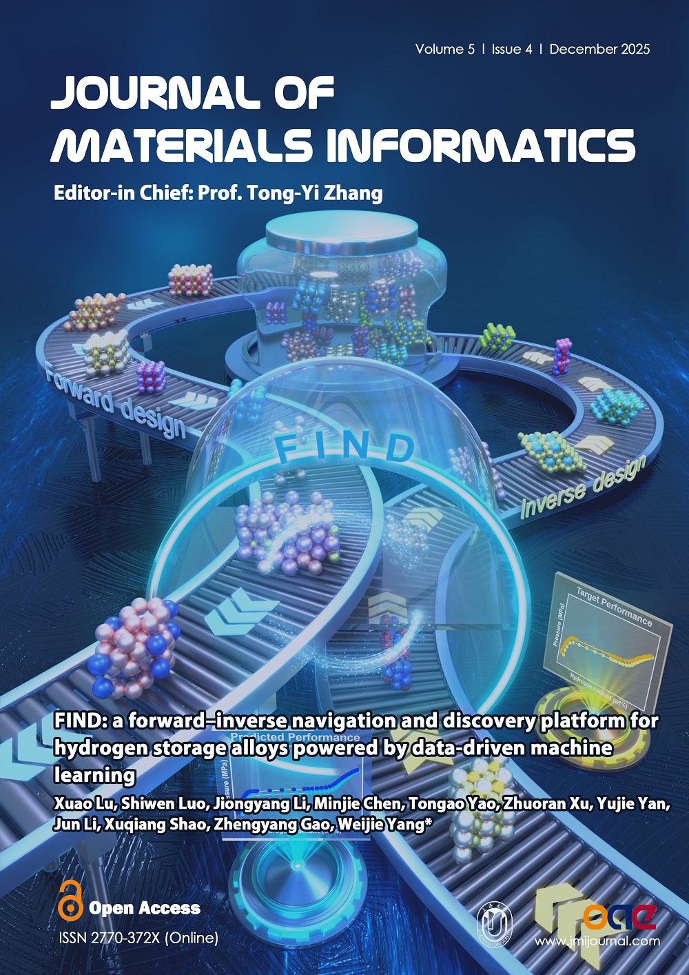 Back Cover Picture: The cover illustrates FIND, a forward and inverse navigation and discovery platform for the intelligent design of solid-state hydrogen storage alloys. At the center, a bright-blue cavity embodies the smart-algorithm engine that executes bidirectional workflows. Two automated pipelines pierce this chamber: the forward design (blue arrow pipeline) conveys assorted hydride precursors into a multi-objective machine learning model that instantly outputs predicted PCT attributes (plateau pressure, capacity, entropy and enthalpy) displayed as translucent holographic curves. The inverse design (yellow arrow pipeline) accepts a user-defined target PCT curve, feeds it to a variational autoencoder, and spawns a family of alloy compositions engineered to meet the specified performance metrics. Both pipelines converge on a solid block that contains over 6000 validated records from the Digital Hydrogen-S database, which underpins the predictive robustness of FIND. By offering these design routes free of charge, FIND furnishes the hydrogen storage community with a high-throughput, data-driven toolkit and establishes a paradigmatic example of materials informatics enabled alloy optimization.