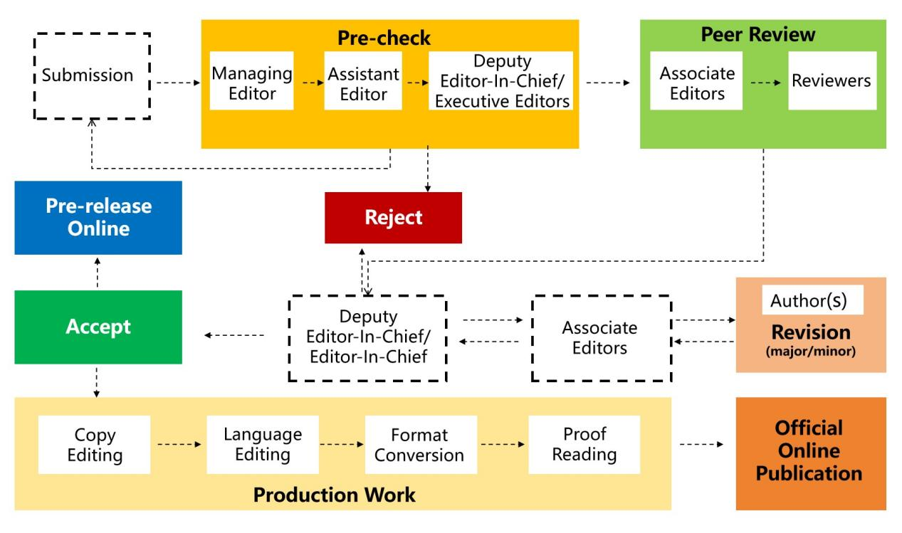 The production work includes language editing, copy editing, format conversion, proofreading, etc. Before publication, authors are provided with a PDF version of their manuscripts for proofreading, where major changes are not allowed.